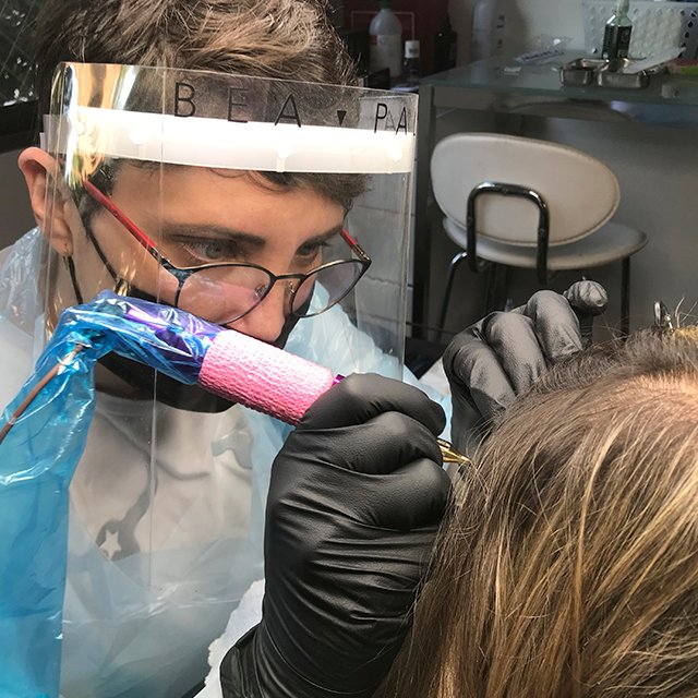 ¿En qué consiste el procedimiento? Es una nueva técnica de maquillaje semipermanente desarrollada por Bea Palma, que consiste en crear patrones de trazos de pelos mediante un método especial, permitiendo obtener un resultado más preciso, duradero y realista al trabajar incluso con el tipo de piel más complejo. Combina diversas técnicas (Hyperrealism Brows, Shading y nano strokes, entre otras) y es realizado bajo anestesia tópica, con un dermógrafo eléctrico.